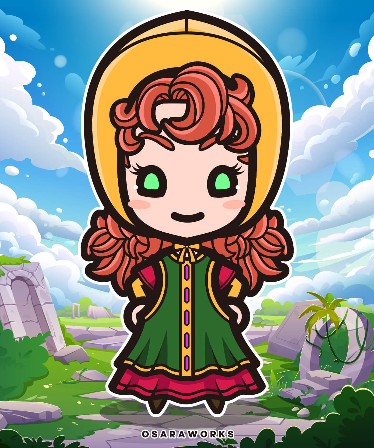 ドラゴンクエスト7からマリベルちゃん!鳥山さんの描く女性キャラ風の目を、ミニキャラでも表現してみました!